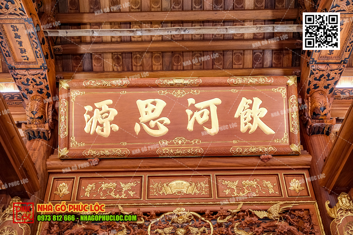 Hoành phi là một tấm biển gỗ hình chữ nhật được treo trang trọng ở vị trí chính giữa gian thờ. Hai câu đối được treo hai bên cột cái hoặc cột con gian thờ. Hoành phi, câu đối không chỉ thể hiện lòng tôn kính tổ tiên mà còn góp phần tạo nên vẻ đẹp trang trọng và uy nghiêm cho gian thờ.